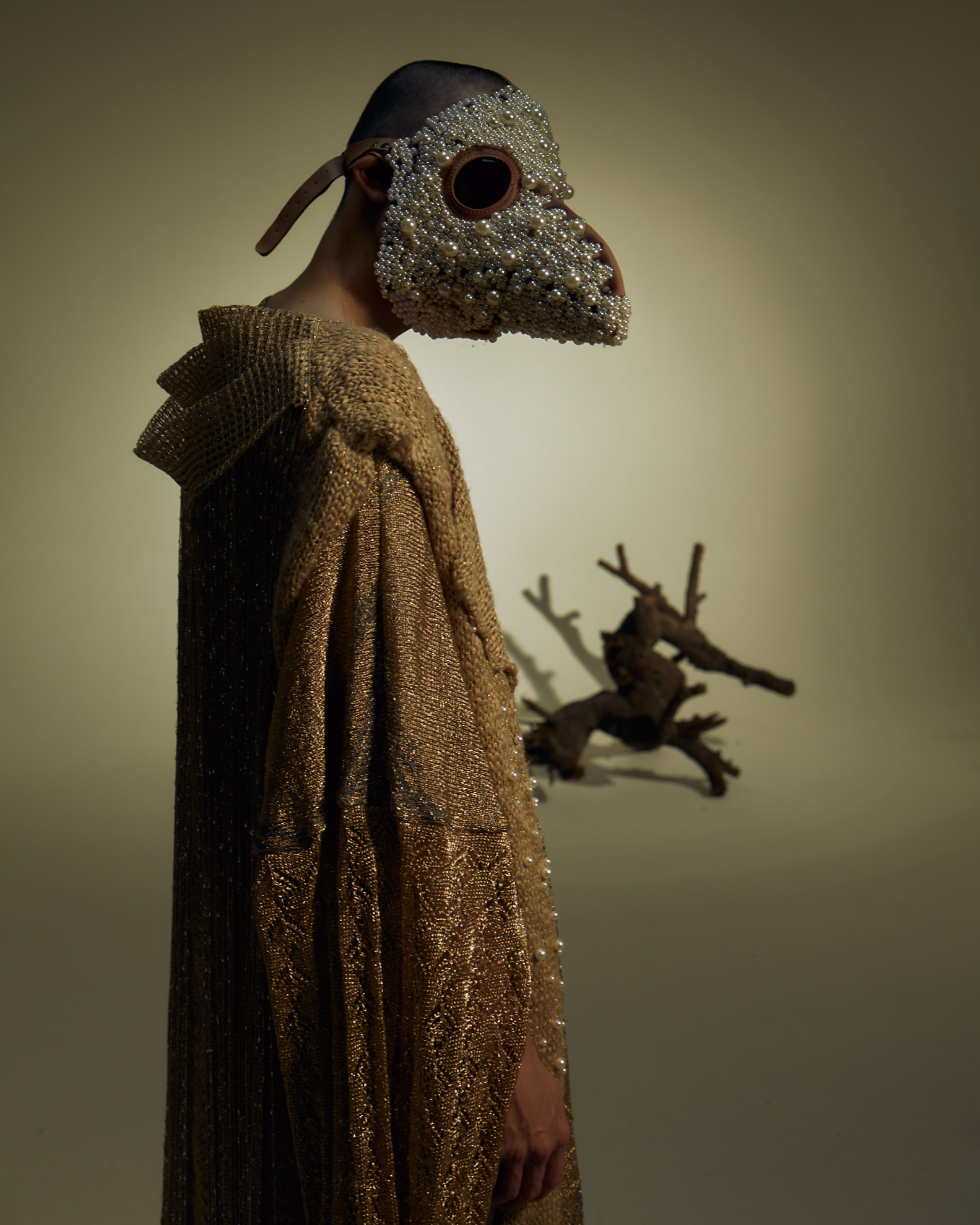 Through the characteristics of knitwear and metallic materials, I try to present both firm and soft, protective and delicate at the same time.